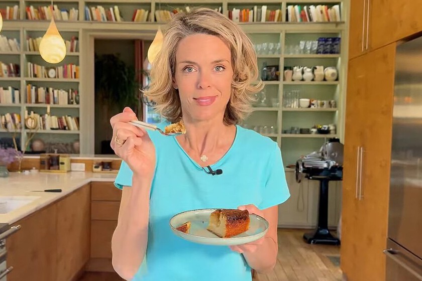 En su receta, con un molde redondo de 20 cm, Julie saca el pastel a los 20 minutos y lo deja horneando 20 minutos, obteniendo una tarta brillante, dorada y caramelizada, muy jugosa y con un sabor delicioso que combina muy bien con las manzanas horneadas. Como afirma al principio del vídeo, ese toque caramelizado “es lo que marca la diferencia”.