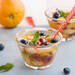 Una vez mezclado todo con tacto, agregamos el zumo de las cuatro naranjas, el licor, el almíbar de melocotón y ajustamos el dulzor, probando primero, con el almíbar que tenemos reservado. Tapamos la macedonia y refrigeramos durante unas horas antes de consumirla.