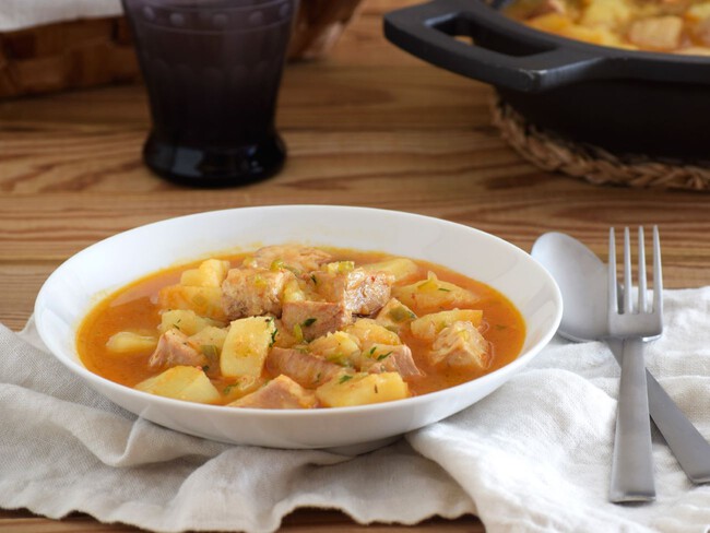 - Comida. Marmita de bonito al estilo asturiano.