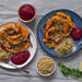 - Cena. Ventresca de salmón a la plancha con guarnición de kale crujiente y boniato asado.