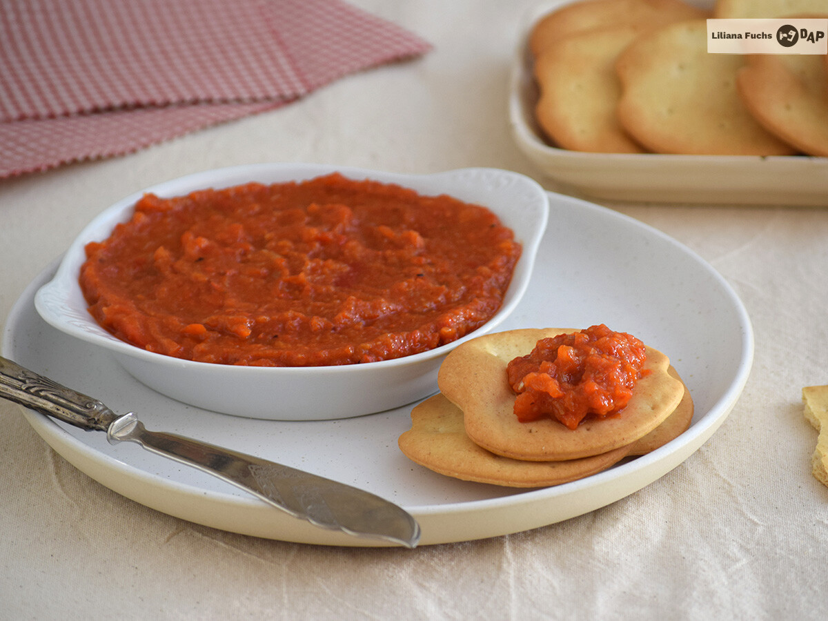 Con el nombre de ajvar se conoce una de las salsas o cremas untables más típicas de la zona de los Balcanes, sencillísima más no poder aunque puede requerir algo de tiempo si se prepara al modo más tradicional. No ha sido nuestro caso, pues hemos omitido un paso para ahorrar tiempo, y, sinceramente, sigue saliendo delicioso.
