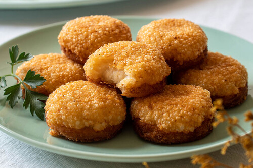 Su nombre es malakoffs y, aunque no está nada claro el origen de la receta, apenas necesita un buen queso (que funda, pero no demasiado, mejor suizo, si nos ponemos puristas), un poco de pan de molde y los clásicos ingredientes que necesita cualquier empanado que se precie: pan rallado, harina, huevo, sal, pimienta… Y un par de ingredientes sorpresa.