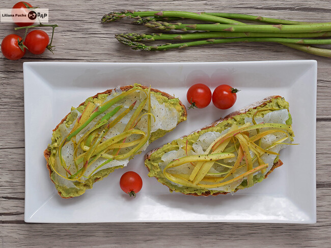 Cómo hacer tostas de aguacate, bacalao ahumado y cintas de espárragos