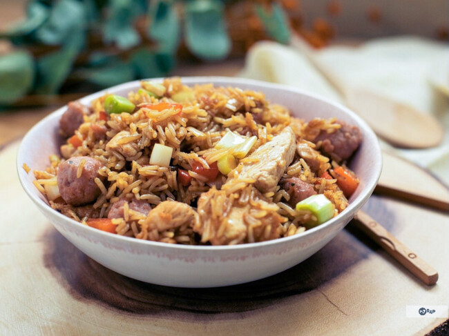 El arroz frito es un plato emblemático de la cocina china, de origen milenario. Aunque cuenta con muchísimas versiones, pese a que aquí sea más famoso el arroz tres delicias, lo importante es el procedimiento por el cual se fríe el arroz en el wok, con verduras, tortilla, carnes y salsa de soja.