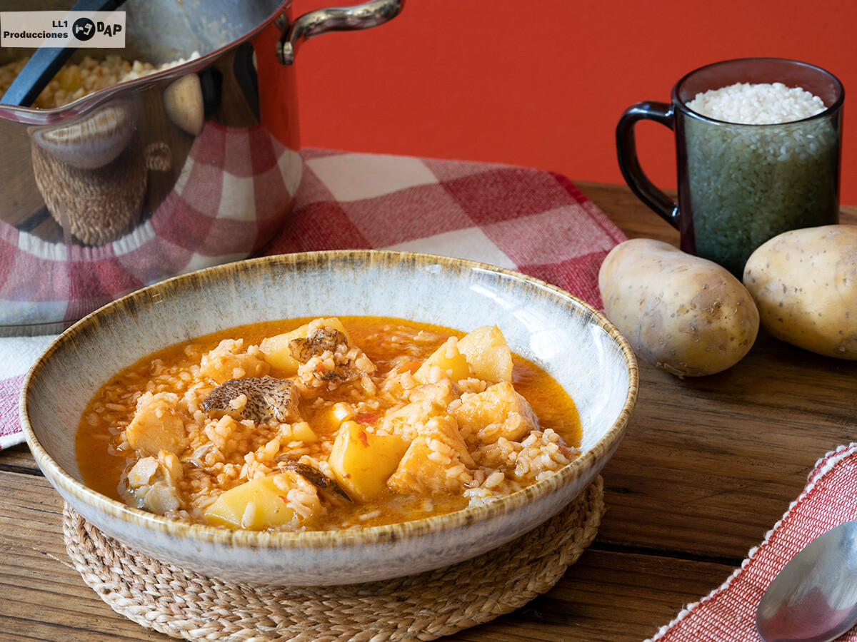 Receta poderosa y saciante donde las haya, este arroz con patatas y bacalao seguramente solo necesite algunos aperitivos para abrir boca como podrían ser unos boquerones en vinagre, unas gildas o unas buenas anchoas en salazón.