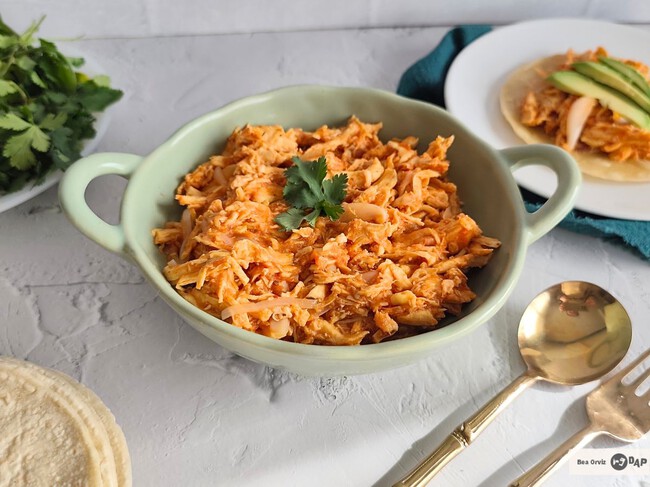 La tinga de pollo es un guiso mexicano hecho con pollo desmenuzado, cebolla y una salsa de tomate con chipotle que le da ese toque ahumado tan característico.