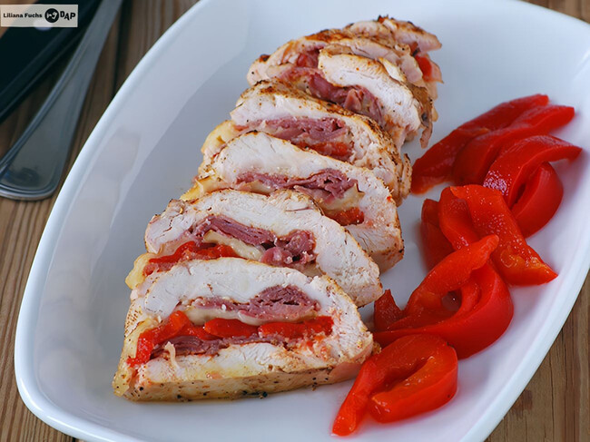 Cómo hacer pechuga rellena de jamón, pimiento y queso
