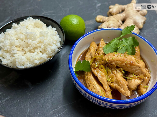 Complicación no tiene apenas. Simplemente, es marcar un poco de pollo fresco, al que se acompañará después con una salsa a base de la propia salsa de soja, el toque del ajo y del jengibre, dando como resultado una forma bastante fácil de comer pollo sabroso.