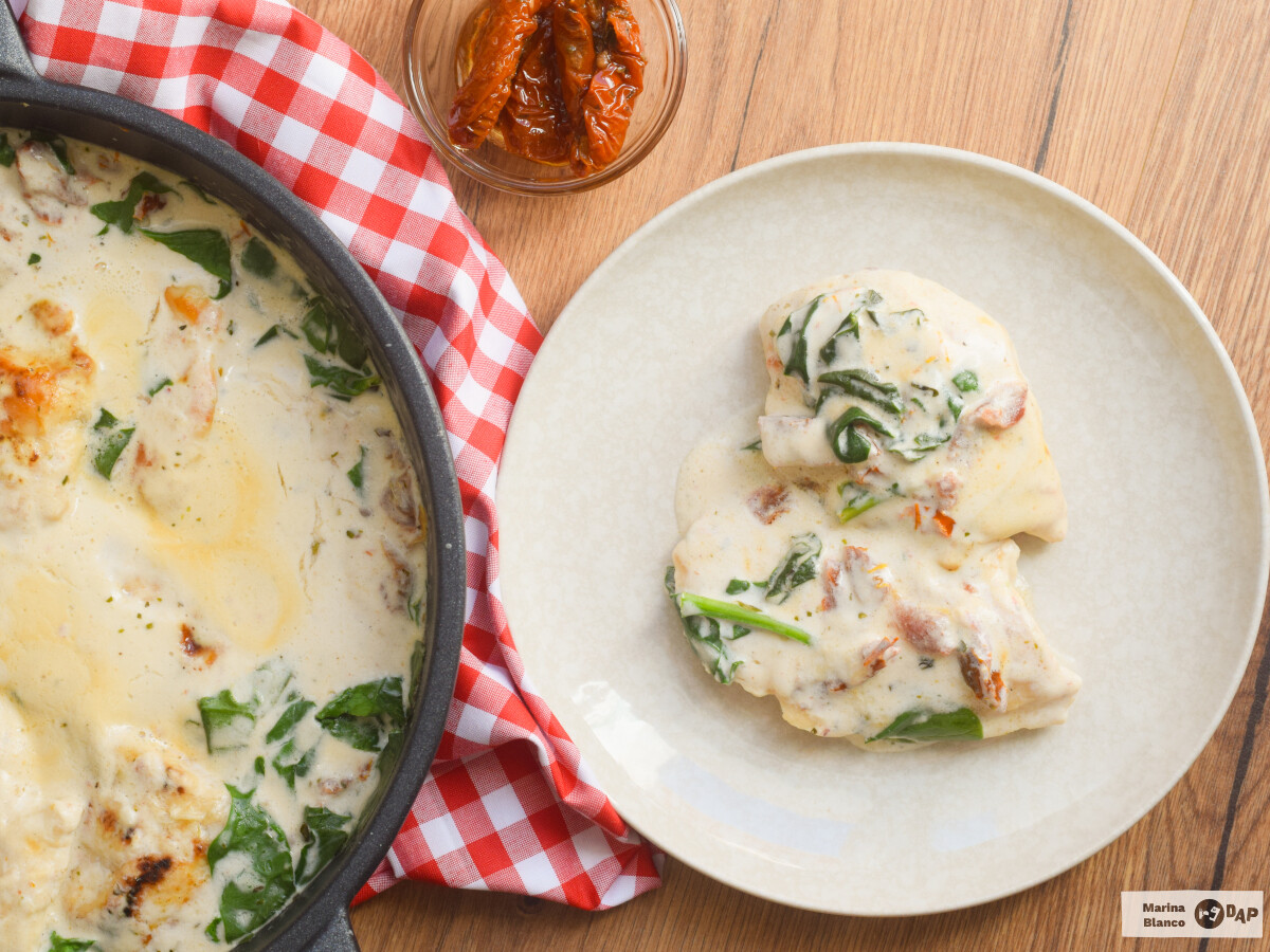 Para potenciar el resultado, basta con añadir algunos ingredientes como el tomate seco y las espinacas, y dejar que la salsa reduzca ligeramente para que concentre todo su sabor. El resultado es un plato sencillo pero muy apetecible, ideal para acompañar con arroz, pasta o un buen trozo de pan.