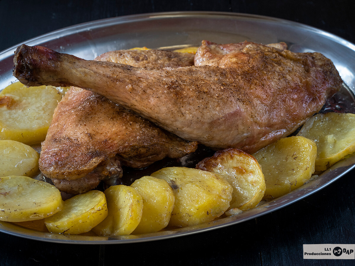 Como en otras recetas de pavo, la clave está en que nos quede jugoso y tierno sin que se seque, con mimbres suficientes para que nos quede una salsa suculenta para acompañar la pierna de este pavo con unas patatas asadas que en nada tiene que envidiar al pavo navideño.
