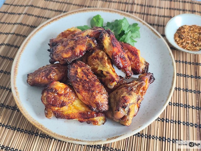 Cuando ya están secas, se colocan sobre una rejilla, primero con la piel hacia abajo, y se espolvorean con sal y pimienta. Después se les da la vuelta para repetir el sazonado sobre la piel, que será la parte que reciba el calor directo del grill. Con el horno precalentado a 230–250 ºC, usando solo el grill, las alitas se introducen con la piel hacia arriba y se dejan hasta que empiecen a dorarse. El grill es rápido, por lo que conviene vigilar. Una vez que la piel tiene un color bonito (unos 10 minutos), se pueden girar para que terminen de hacerse de forma uniforme (5 minutos).