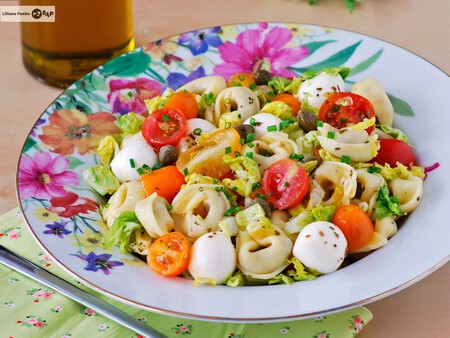 Remarco lo de prácticamente, porque pongo en duda que en Italia vean con buenos ojos utilizar pasta rellena para este menester. Suena más a invento estadounidense, pero en este caso tengo que darle la razón a la cocina italoamericana. Si podemos hacer ensaladas de pasta con fussilli -tornillos, hélices-, farfalle -pajaritas, lazos o mariposas-, penne rigate -macarrones o plumas rayadas- u orecchiette, ¿por qué no aprovechar también las que llevan relleno?