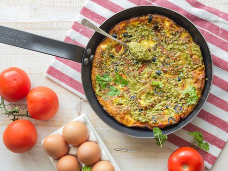 Podríamos llamarlo frittata, pero no es más que una tortilla con ingredientes sabrosos que se cuaja en la misma sartén o fuente para manchar lo mínimo