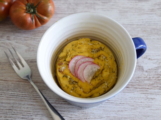 Llevo muchos años cocinando huevos en el microondas, normalmente usando un recipiente de los de silicona diseñados para este menester, con su tapa. Pero desde que aprendí a cocinarlos con una taza, el resultado me gusta incluso más, quizá por el material más noble o por la comodidad. La idea es la misma que la de preparar un bizcocho en taza o mug cake: mezclar los huevos con unos pocos ingredientes más directamente en una taza grande engrasada y calentar en microondas apenas un minuto. Y a comer directamente sin manchar nada más.