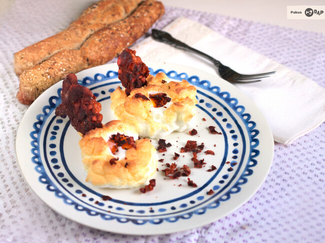 Los huevos nube, cloud eggs o huevos souffle con bacon crujiente son perfectos para hacer un delicioso y original desayuno que podemos servir a quienes más queramos, dándoles una sorpresa o incluso llevándoselos a la cama. Lo increíble es la textura de la clara, que parece una nube, puro aire, mientras la yema sigue fluida, y todo ello en contraste con el bacon sabroso y crujiente.