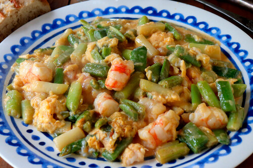Clásico donde los haya entre los segundos platos del menú del día de decenas de restaurantes, el revuelto de ajetes con gambas ha pasado por modas y épocas hasta prácticamente desaparecer de muchas cartas, pero podemos hacerlo en casa sin complicarnos la vida. Aquí lo único que hay que hacer es cortar los ajos tiernos en trozos de dos o tres centímetros, batir los huevos, limpiar las gambas y añadir un poquito de leche en un bol; ahora verás por qué.