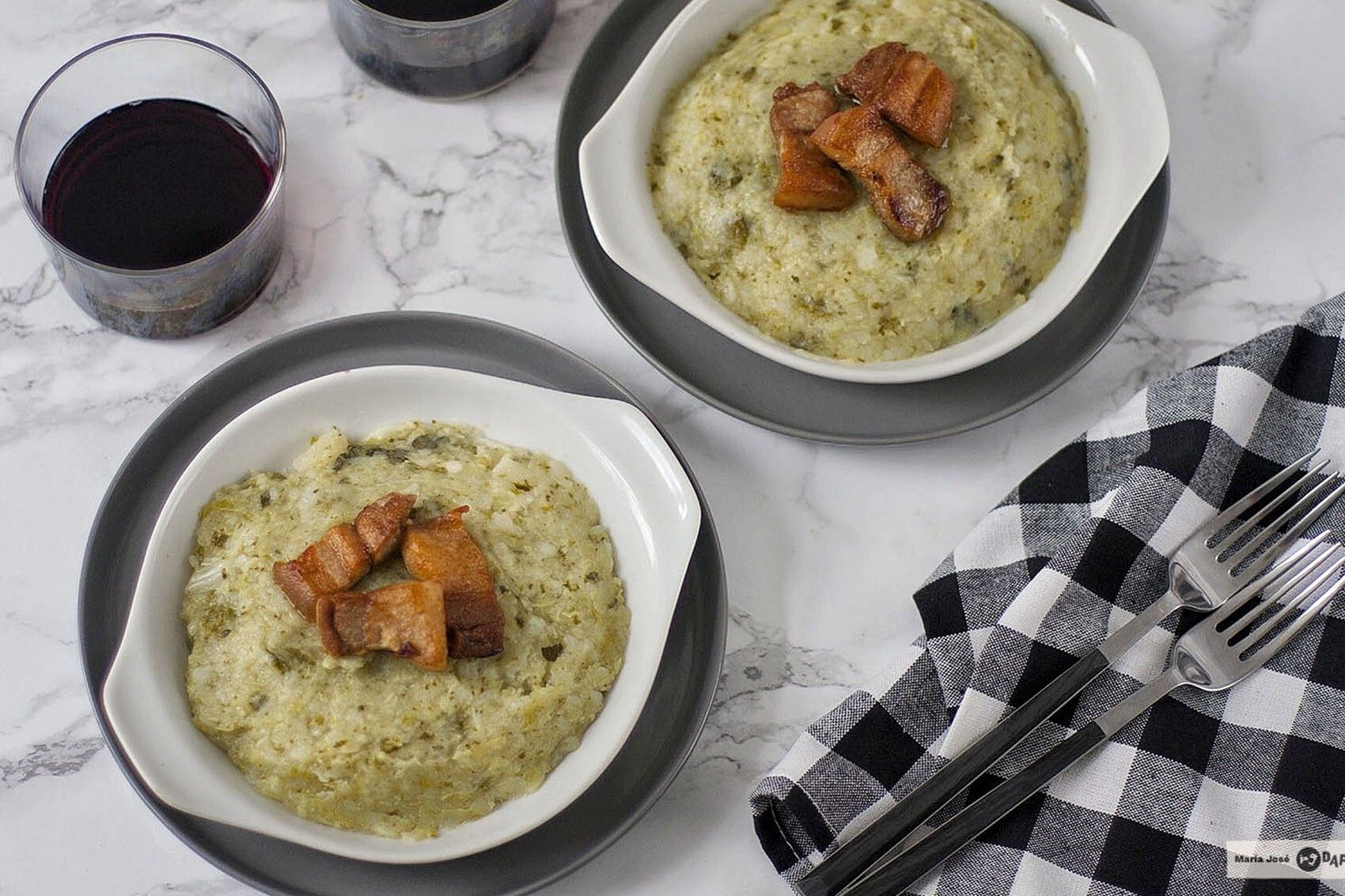 La elaboración no tiene misterio: se cuecen las patatas enteras y, cuando van ya encaminadas, se incorpora la col para terminar la cocción en el mismo agua. Una vez escurrido todo, se pelan las patatas, se trocea la col y se machaca el conjunto en un bol —mejor con tenedor que con batidora— para mantener ese punto rústico que le sienta tan bien.