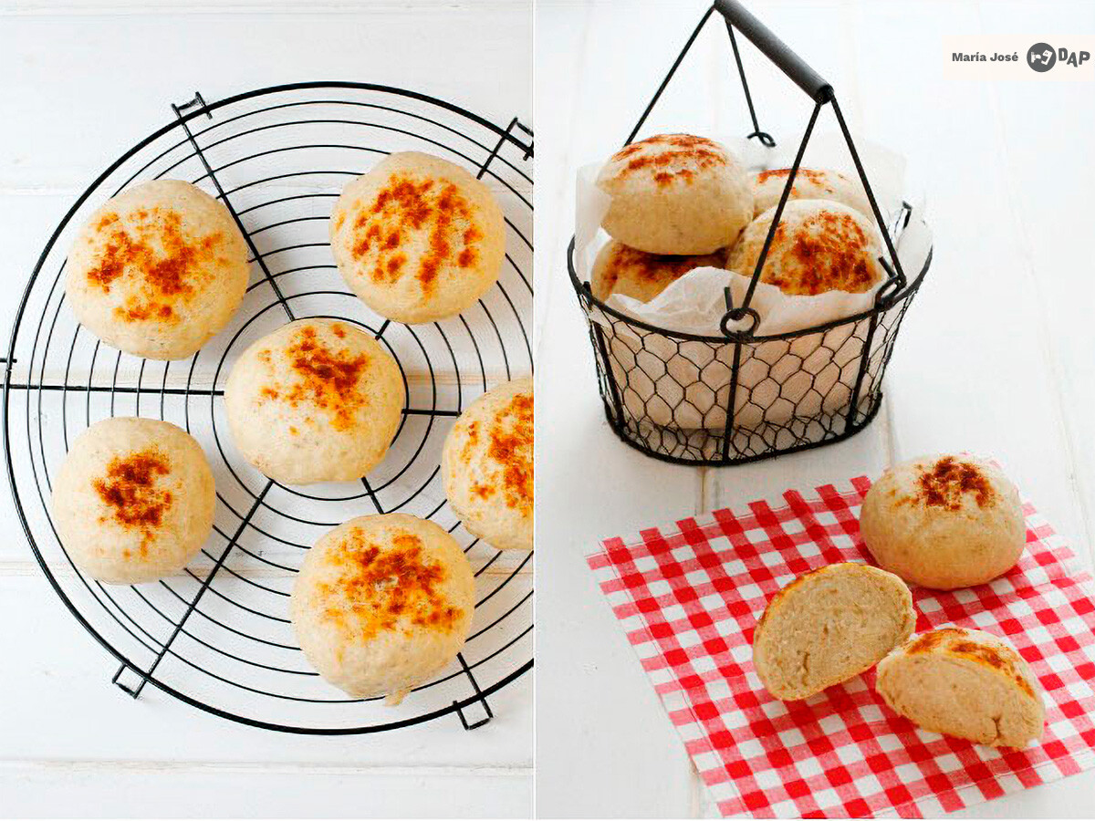 Colocamos las porciones en una bandeja cubierta con papel de hornear, las pintamos con aceite y las espolvoreamos con sal y pimentón Las dejamos reposar de nuevo hasta que doblen su tamaño y la horneamos a horno precalentado a 180º unos 30 minutos.