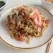 La base son los fideos de trigo (tipo ramen) y no merece la pena intentar hacerlo con fideos de arroz ni con vermicelli porque la textura no es la misma. Lo típico es utilizar col china, pero si no tienes puedes sustituirla perfectamente por repollo. En cuanto a la proteína yo he usado beicon –que es lo más típico– aunque quedan igual de bien los yakisoba de pollo, gambas o incluso tofu firme.
