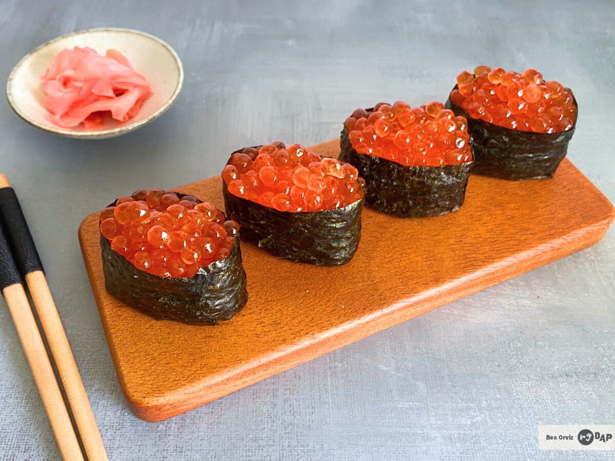 La palabra gunkan significa literalmente “barco de guerra” o “acorazado”, y el nombre le va bastante bien porque la pieza recuerda un poco a una pequeña embarcación. Es una forma de sushi relativamente moderna dentro de la cocina japonesa y surgió precisamente para poder servir ingredientes más delicados o sueltos de una manera práctica. En esta versión vamos a hacer gunkan de ikura, una de las versiones más clásicas.