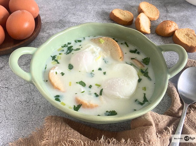 Déjalos unos minutos sin remover demasiado, hasta que la clara esté cuajada y la yema quede a tu gusto, más o menos cremosa. Prueba de sal, ajusta si hace falta y sirve la changua bien caliente con pan tostado.