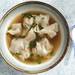 En el cuenco de servir coloca un buen puñado de cilantro fresco . Vierte el caldo caliente encima y añade los wontons recién cocidos.