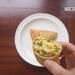 Para el efecto cremoso, triturar una lata del maíz y dejar la otra mitad entera. En una sartén con aceite de aceite, pochar la cebolla y el pimiento verde hasta que estén bien blanditos, sin que lleguen a dorarse demasiado. Añadir el maíz en sus dos formas y rehogar un par de minutos para que tome el sabor del sofrito. Condimentar con la sal, pimienta y pizca de comino molido.