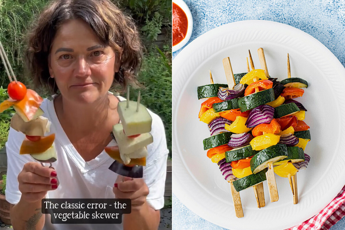Nos lo advierte Genevieve Taylor, chef especializada en la cocina con fuego, gran experta británica en barbacoas, brasas y parrillas, autora de varios libros especializados en la materia. Es un “error clásico”, comenta en una de sus publicaciones en redes sociales, donde comparte trucos y consejos. Mezclar diferentes verduras en una misma brocheta es un gran error.