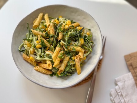 Inspirada por una propuesta vista en la cuenta de Dr. Vegan en redes sociales, el eje de esta receta es el uso de la freidora de aire para transformar la pasta en un topping crocante y adictivo, los llamados "pasta chips".