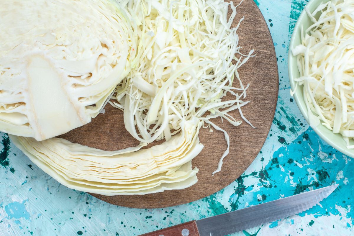 Para preparar los ejemplares redondos, córtalos en cuatro cuartos con un gran cuchillo afilado y, a continuación, corta cada uno en tiras o cintas finas. Lo suficientemente finas como para que puedas comerlas en crudo, pero con cierta anchura para usarlas también en guisos. Si son ejemplares pequeños, puedes cortarlas por la mitad en lugar de cuartos. En cuanto a las coles alargadas, en lugar de cortarlas en cuartos, sepáralas en dos mitades longitudinales. Los tallos o troncos más gruesos los puedes desechar.