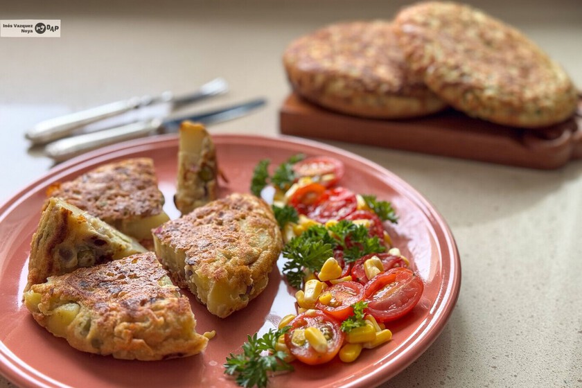 A diferencia de las tortillas de huevo, que requieren precisión con el cuajado, esta versión vegana simplifica el proceso: solo hay que batir la harina de garbanzos con agua y las especias, mezclar con los guisantes, patatas y cebolla y verter en la sartén hasta que esté dorada y firme. Este método es infalible y, al no requerir cocciones previas complejas, se traduce en una cena lista en tan solo 35 minutos.