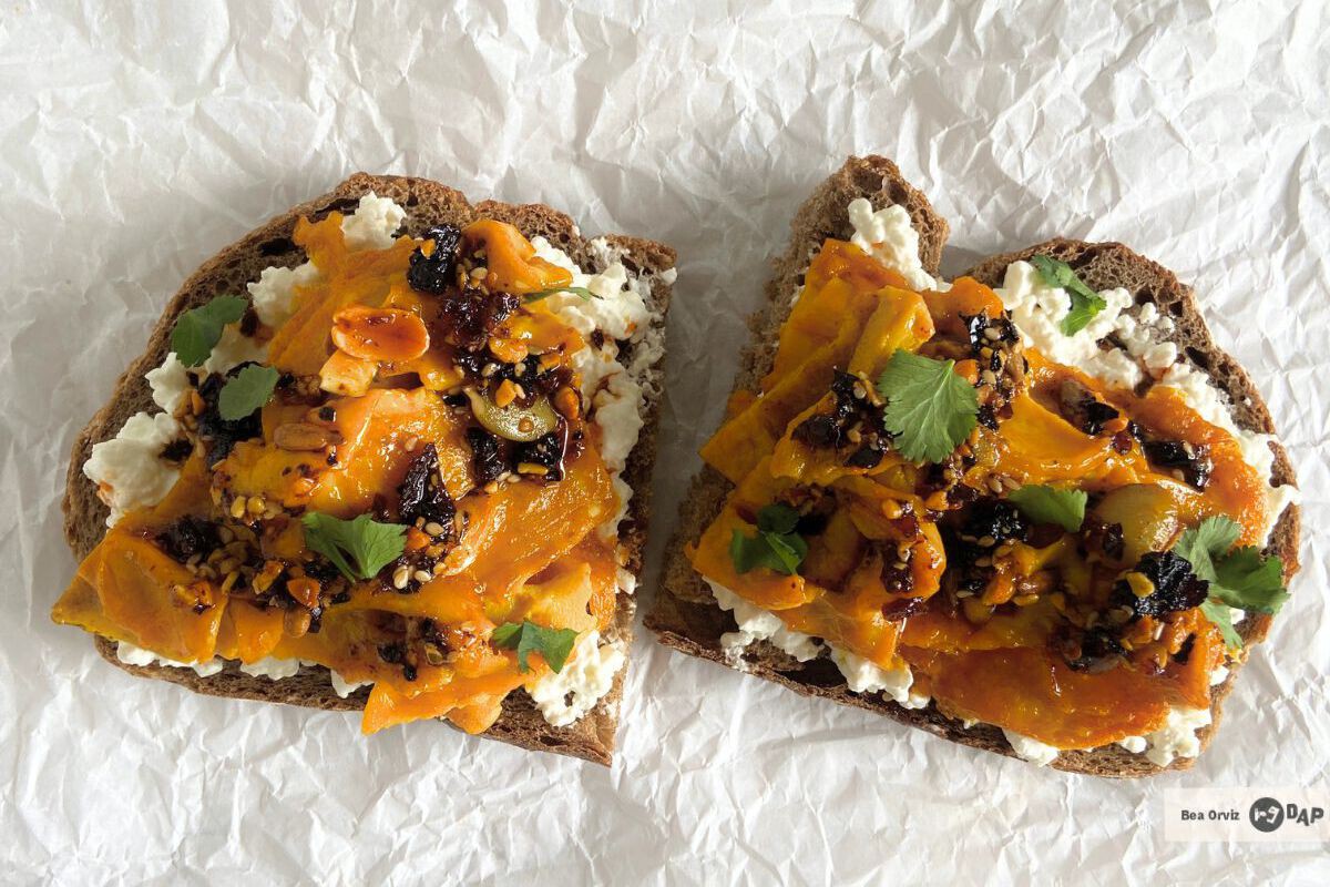 Cuando hago esta tosta suele ser lo único que ceno porque llena bastante. Si aun así te quedas con hambre puedes añadir una ensalada sencilla. Y si necesitas más, una segunda tosta con aguacate, tomate y cebolla encurtida, te deja la cena hecha sin complicarte.