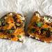 Tuesta la rebanada de pan. Mientras, bate los huevos y añade las especias. Esta vez cúrcuma, cilantro en polvo, comino y sal. Pon un poco de aceite en la sartén y haz la tortilla.