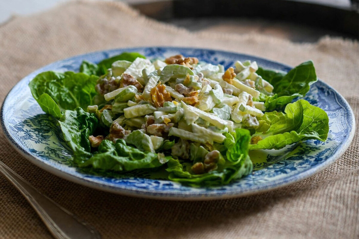 Por eso, si estás hasta el gorro de ensaladas sin mordida, esta receta viejuna pero efectiva te puede sacar de más de un apuro: la ensalada Waldorf. Su nombre nos retrotrae al finales del siglo XIX, cuando el mâitre de un hotel neoyorquino (el famoso Waldorf Astoria) tuvo bien preparar una sencilla ensalada en la que la base es apio, manzana y mayonesa.