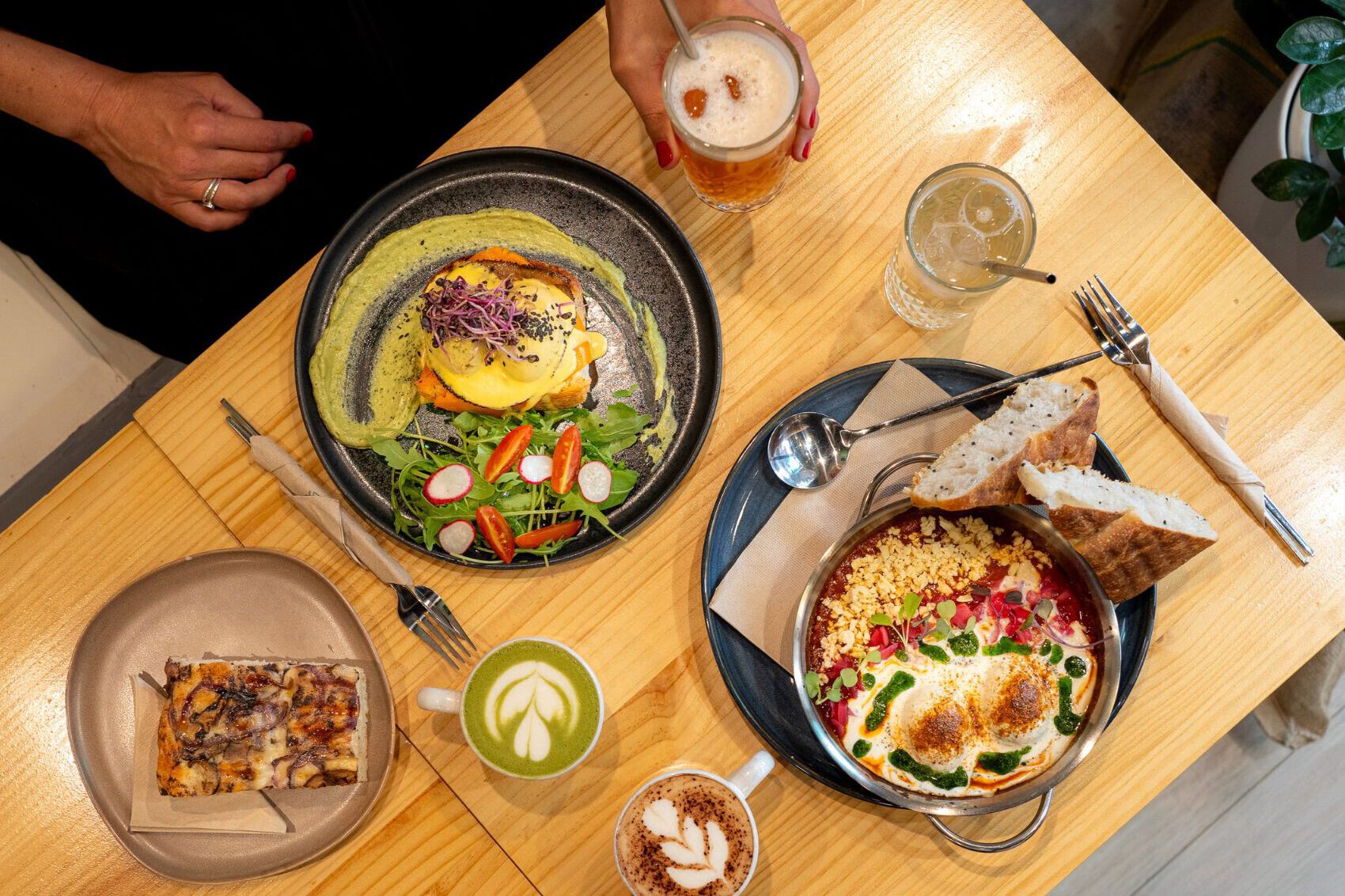 Aunque los Benedict son el imán de las miradas, la carta se complementa con otras joyas como las focaccias artesanales. Niki utiliza ingredientes seleccionados para lograr sabores redondos: la Trufada, con aceite de trufa negra, setas shiitake y aceitunas Kalamata, o la Campesina, con mozzarella, pimiento rojo asado y salsa de tomate. La propuesta salada se completa con los Huevos Maghrebi (Shakshouka), una base de tomate especiado y pimiento rojo acompañada de queso feta, yogur y aceite de menta, servida con focaccia de nigella. Para quienes buscan un toque extra, es posible añadir jamón o queso a sus platos, reforzando ese perfil umami que tanto caracteriza a la cocina del local.