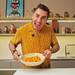 El cocinero y pastelero empieza salteando unos níscalos con un poco de aceite y un diente de ajo aplastado, dejando que coja todo buen color. Aparte, ralla fina una zanahoria grande bien lavada para aportar a la ensalada un elemento crujiente que sume textura y frescor, algo que también suman los granos de media granada que saca al momento, quitando membranas.