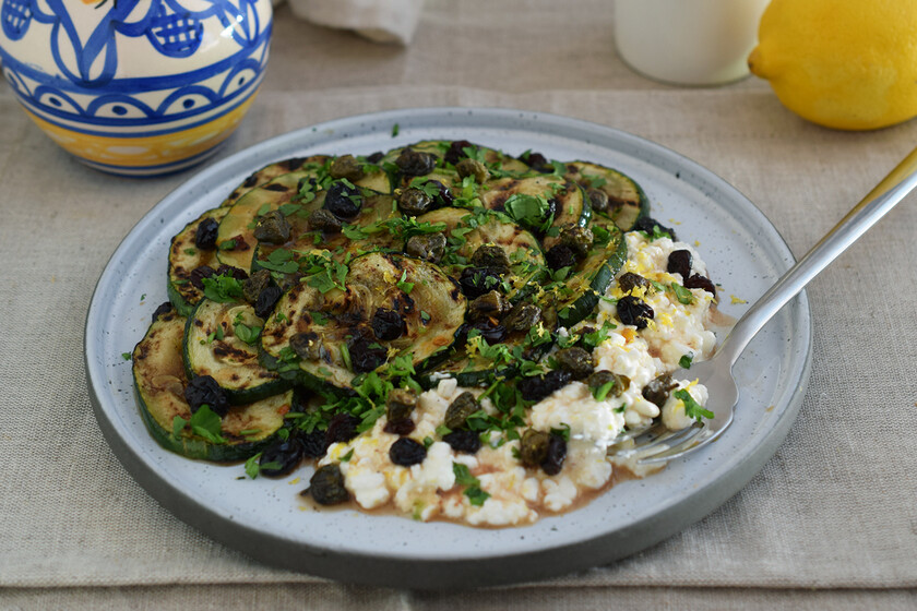 Inspirada por el chef Yotam Ottolenghi, esta receta de calabacín debería entender ex aequo como también una receta con queso fresco, pues ambos son muy protagonistas, todo en un tono agridulce –para bien– con un toquecito de vinagre que resalta al calabacín a la plancha y que le hace mantener su jugosidad.