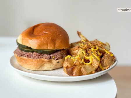 La incorporación de especias, hierbas aromáticas y un aglutinante adecuado, como harina de garbanzo, harina de maíz o pan rallado, es esencial para unificar las partes. Lo bueno es que se puede personalizar y armar al gusto: con una salsa barbacoa, mayonesa o sin nada, para un estilo clásico. En mi caso, opté por unas cucharadas de mostaza y unos pepinillos en vinagre sobre la hamburguesa para una dosis de acidez.