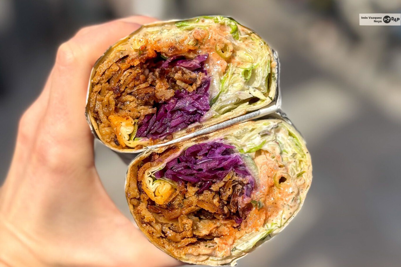 Al probar el dürüm, la idea del buen mordisco se confirma. Lo primero que sorprende es su estructura: a diferencia de otros kebabs vegetales que tienden a desmoronarse, este mantiene su forma perfectamente de principio a fin, permitiendo disfrutar de cada capa sin que la tortilla de trigo ceda. Es un dürüm que se disfruta con las manos y, aunque corras el riesgo de mancharte un poco, ese acto es parte del ritual. Es la señal de que las salsas y el marinado están donde deben estar.