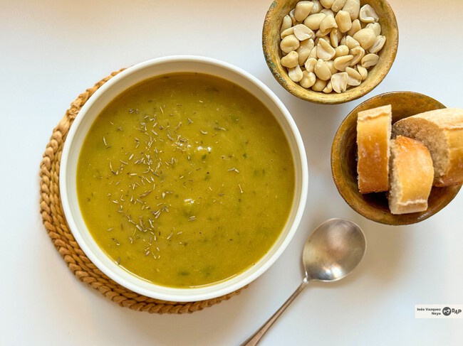 Este plato de cuchara se potencia con unos picatostes por encima o bien unas semillas o unos frutos secos troceados. E ideal para acompañar una proteina ligera como huevo duro o lentejas.