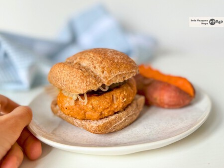 En formato hamburguesa de arroz con boniato, el resultado supera cualquier expectativa. Lo que la hace realmente resultona es el equilibrio de sus ingredientes: el boniato aporta dulzura, una textura cremosa y un color potente que invita al primer bocado. Al combinarlo con el arroz, se logra esa consistencia firme por fuera y suave por dentro, ideal para servir entre panes.