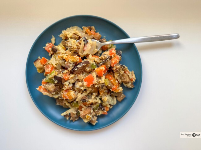 El proceso es directo: saltear las verduras y verter el huevo batido para ligar el conjunto. Unas escamas de guindilla o un chorrito de salsa sriracha pueden darle un toque extra a la hora de servir de manera opcional si gustan del picante.