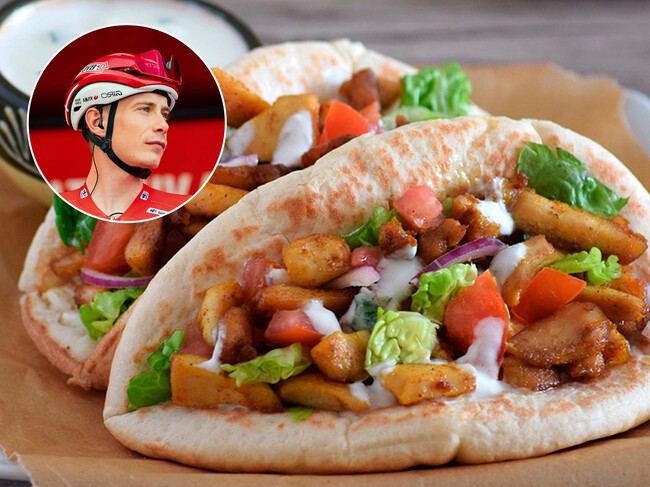 En este caso, explicaba Lambrecthse a NOS, lo que hace para satisfacer el mono de Vingegaard es freír un poco de pollo con las típicas especias shawarma, habituales en los kebabs, y envolviéndolo en un wrap con lombarda, cebolla y salsa de ajo.