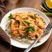 Se trata de un delicioso bol de arroz con salmón premarinado a la plancha, el cual está acompañado de patatas al horno, pimiento rojo, calabacín y boniato. Todo podemos mezclarlo con la deliciosa salsa romesco de acompañamiento que pone el toque jugoso al conjunto. Además de realzar los sabores del salmón y las verduras, integrándolo todo con el arroz.