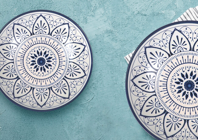 Cuando elijamos una vajilla deberíamos tener en cuenta su resistencia, sí, pero también que sea bonita, aunque sin salirnos mucho del presupuesto. En Alcampo hemos fichado una vajilla Santa Clara que cumple con ambos criterios por 39,99 euros. Y si algo llama la atención de este juego de platos es su diseño que recuerda a las losas portuguesas.