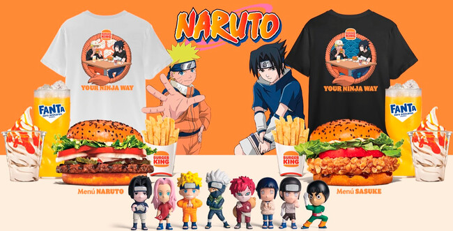 Para sorpresa de todos Burger King ha sorprendido con dos menús rivales inspirados en los dos personajes rivales: Naruto Uzumaki y Sasuke Uchiha. Han transformado el clásico Whopper en el Naruto Whopper mientras que el pollo crujiente se convierte en el menú Sasuke Crispy Chicken.