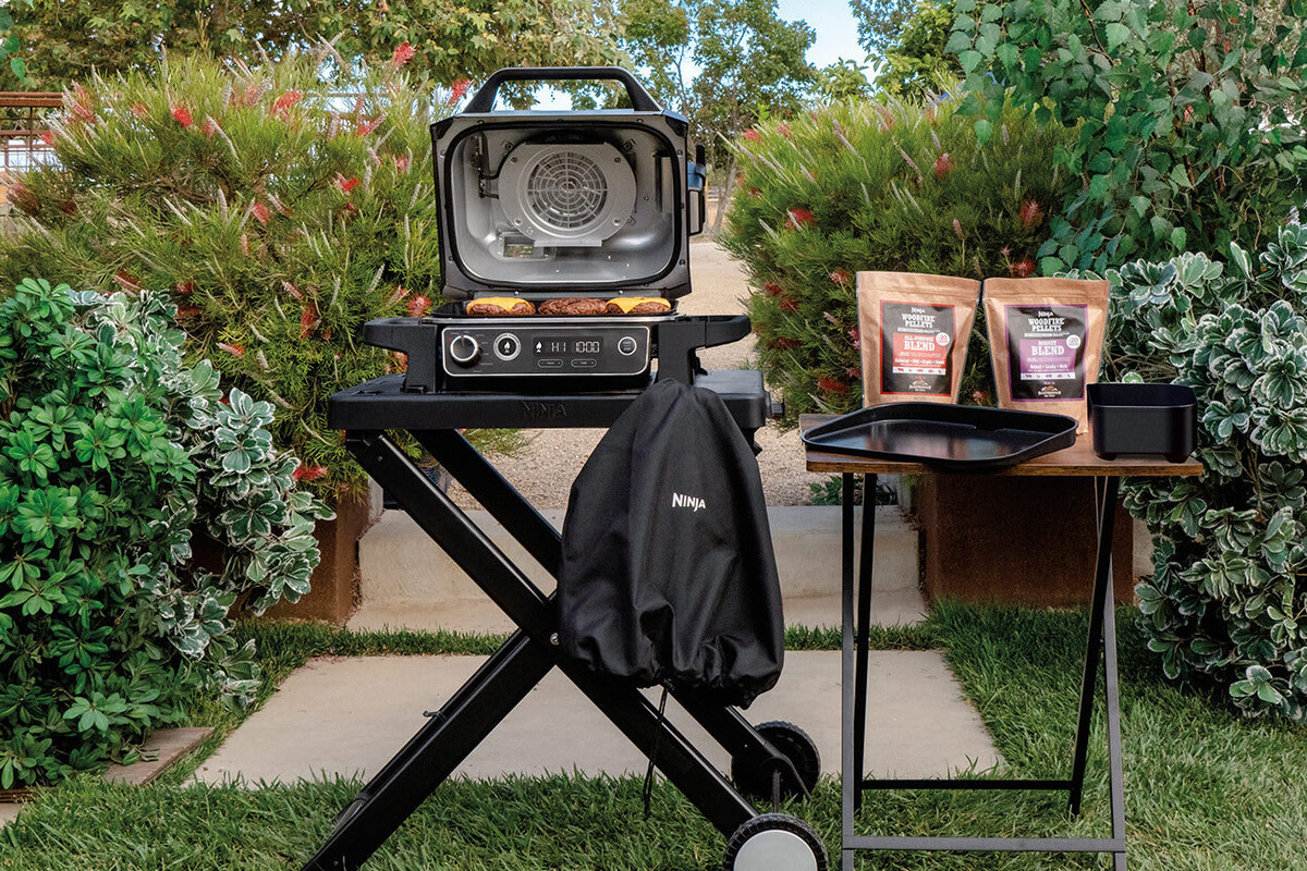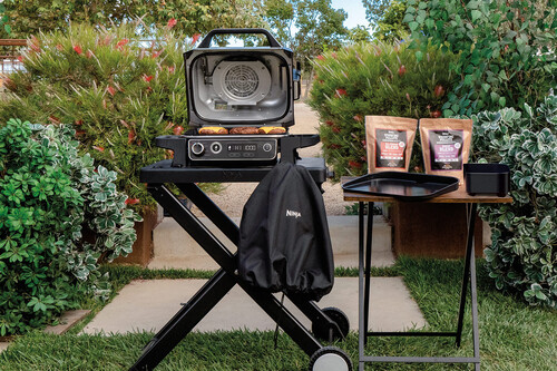 Cuando los espacios exteriores son pequeños y una barbacoa de carbón no se siente segura. Lo mejor es pasarse a las eléctricas, pues no generan llama, pero tampoco renunciamos al sabor de la carne asada. Una buena opción es este completo set de Ninja Kitchen que incluye la barbacoa, soporte y una funda protectora. Todo por 419,99 euros.