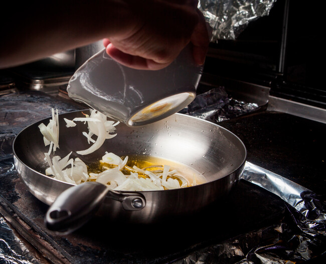 Creo que podemos afirmar que está a la altura de las que encontraríamos en cualquier cocina profesional. Y no solo es perfecta para sellar piezas de carne grandes, sino para elaborar salteados e incluso una clásica tortilla de patatas. El acero inoxidable alcanza buena temperatura rápidamente, incluso en vitrocerámica, y el calor reparte de modo uniforme.