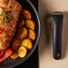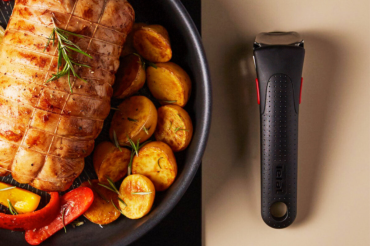 Dicho mango se acopla con un click a presión que sujeta las sartenes y es capaz de soportar hasta diez kilos de peso. Para retirarlo solo debemos pulsar el botón y se soltará sin estropear la sartén ni dañarla de ninguna forma. Así podemos usarlo en varias sartenes a la vez siempre que necesitemos desplazarlas o saltear los ingredientes.