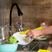 Además de ser cómodo evita que el agua se acumule e la bandeja inferior gracias a una canalización orientable, que hace que el agua caiga directamente al fregadero. No queda a ras de la encimera, sino que dispone de cuatro patas antideslizantes que evitan que el escurreplatos se mueva de su sitio.